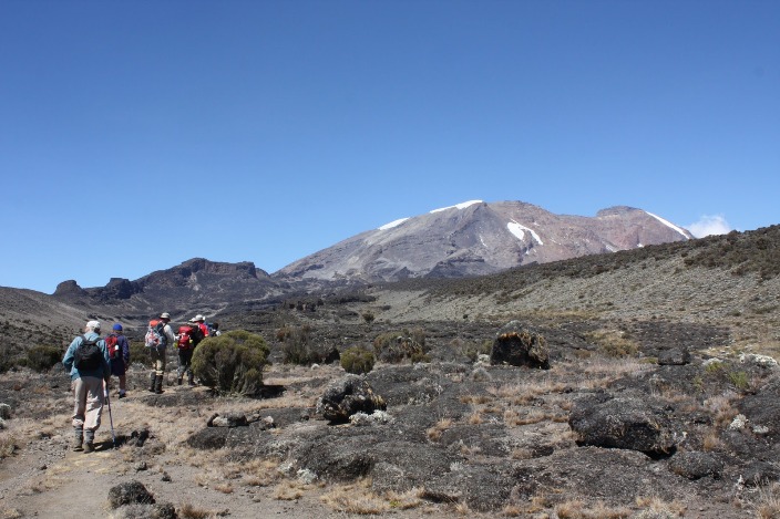 The trail continues up towards Kibo, passing Second Cave (3450m) en-route, and reaching Kikelwa Cave at about 3600 metres. The views start to open up and you begin to feel you’re on a really big mountain! Water is in the obvious stream below the cave, although you might have to wander downhill a way to find some. Overnight at 3rd Cave camp (Kikelewa Caves), B,L,D.
